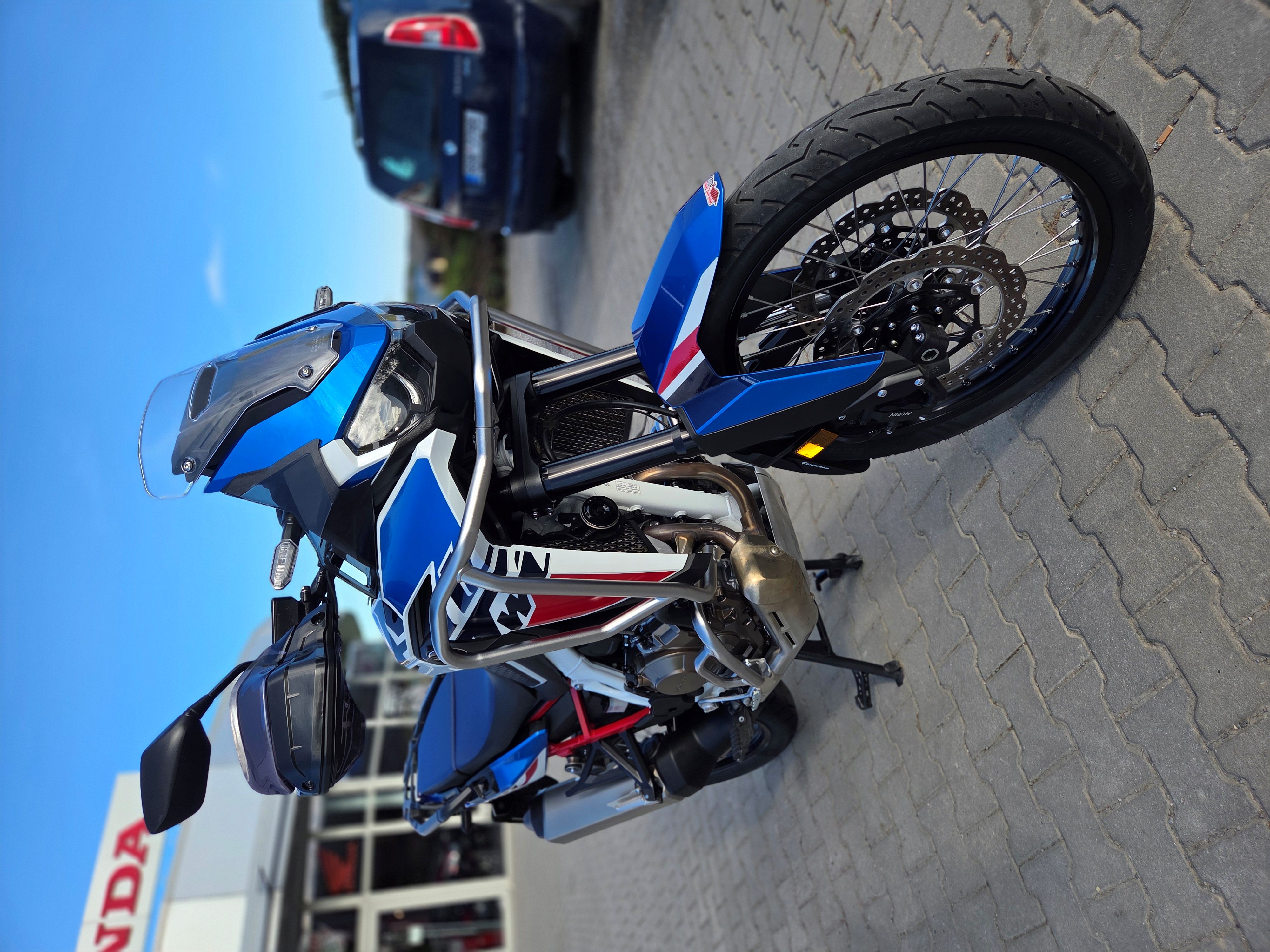 Výbava: padací rámy, vyhřívané rukojeti, 12V zásuvka, deflektory, blastery Puig, hlavní stojan, rozšíření bočního stojánku, boční tankpady, quickshifter.